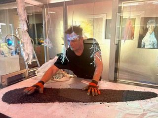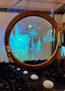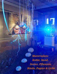 Und einer gemeinsamen Installation im alten Kassenhäuschenn aus Kohle, Steine, Sand, Pflanzen und Lichtprojektionen.